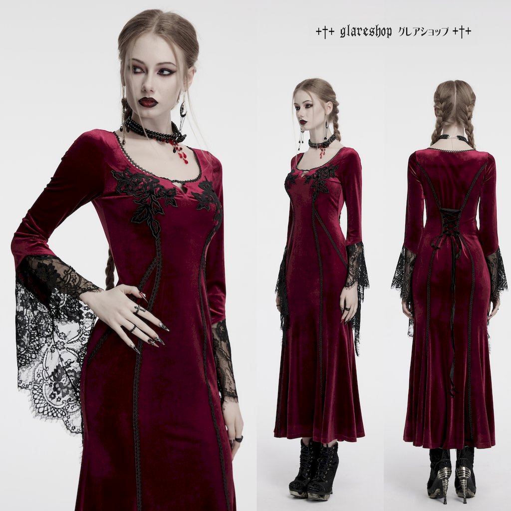 glareshop グレアショップ「S/L/2XL」WX948-R■ゴシックベルベットロングスリーブフィッシュテールマキシドレス レッド レディース | ヴィジュアル系 V系 モード系 コスプレ ステージ 衣装 服 [PUNK RAVE] Gothic Velvet Long Sleeve Fishtail Maxi Dress