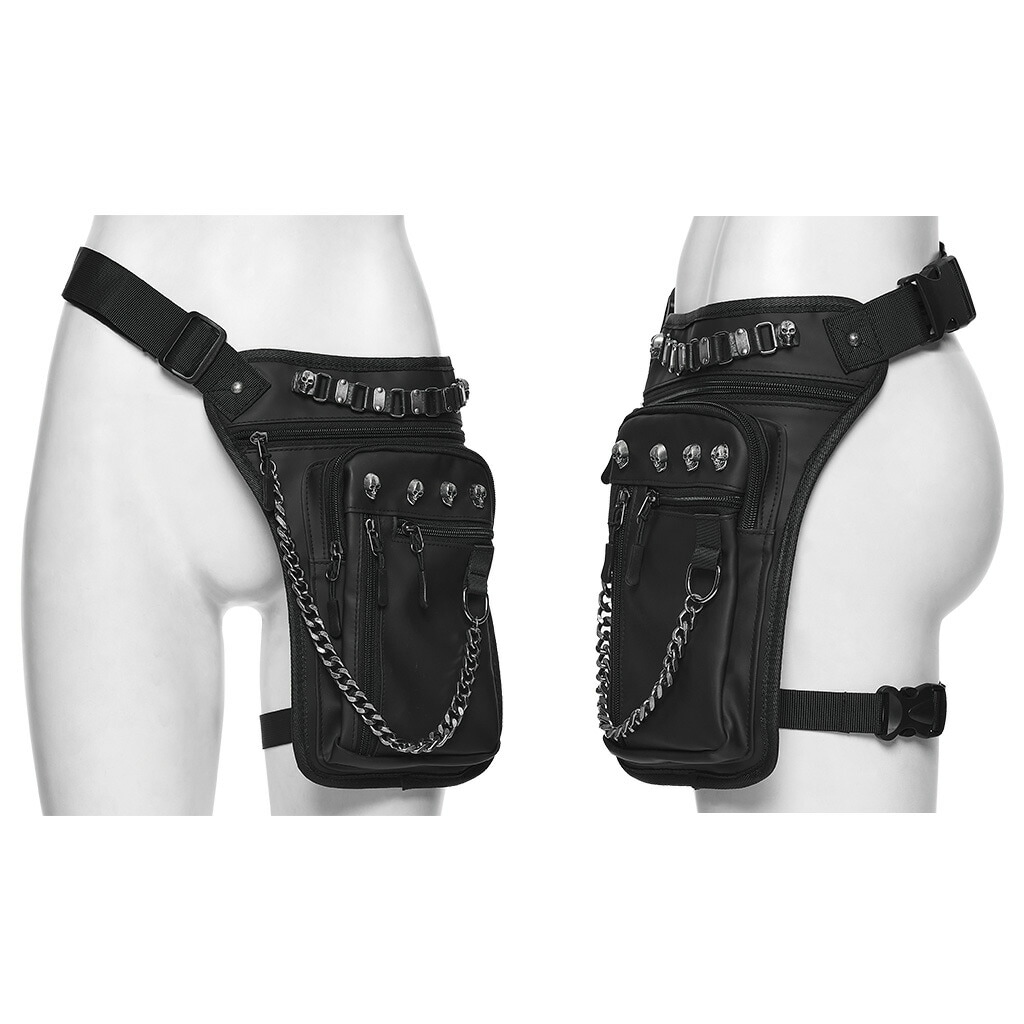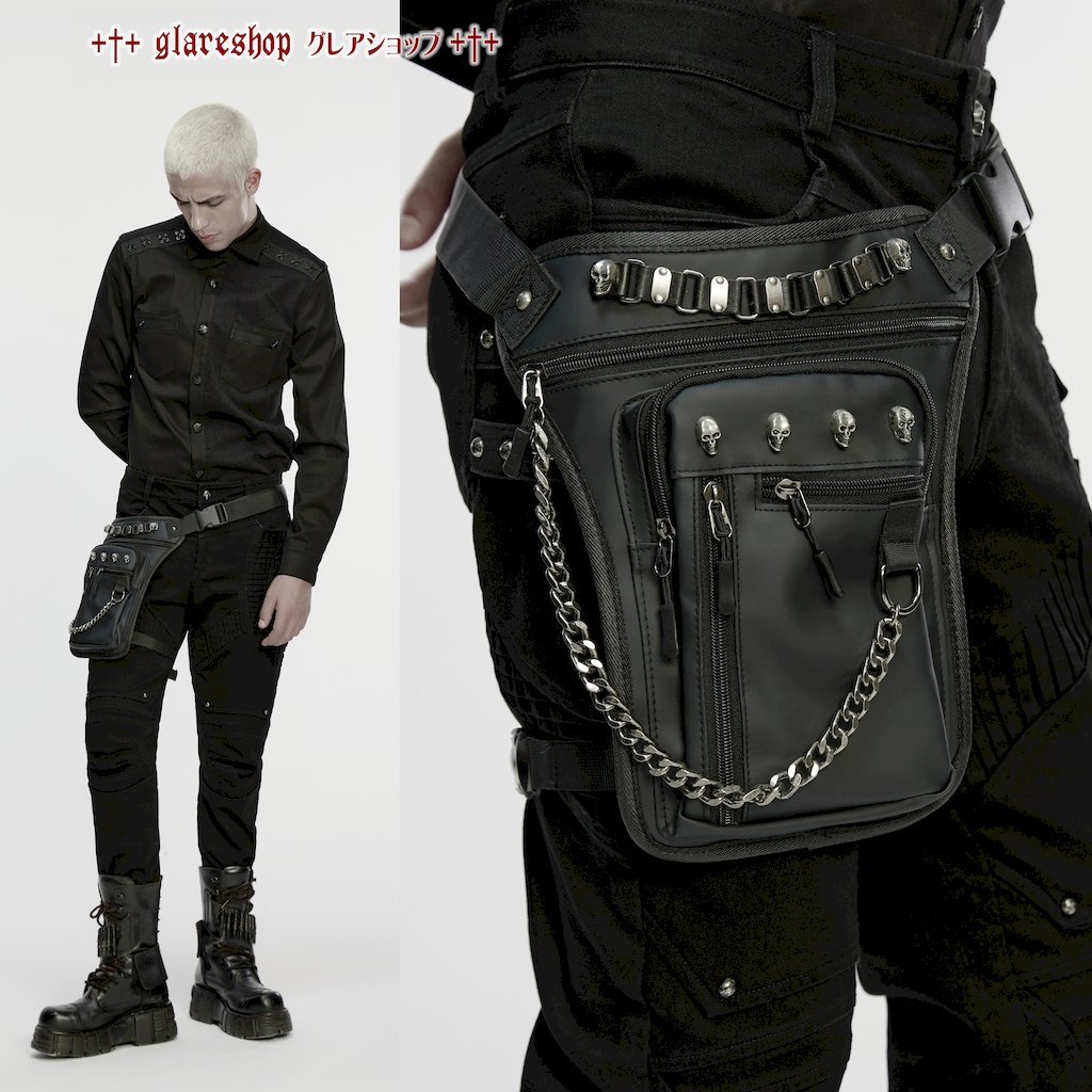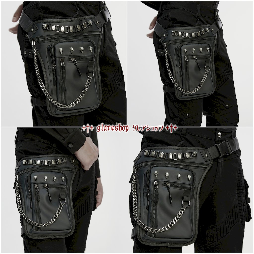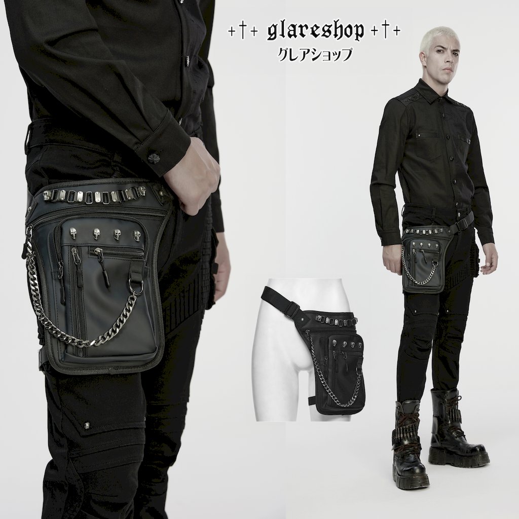 - glareshop グレアショップ「F」ZX094-man-B■サイバーパンク リベット スカル ウエストレッグバッグ 黒 メンズ | ヴィジュアル系 V系 モード系 コスプレ ステージ 衣装 服 [PUNK RAVE] Cyberpunk Rivet Skull Waist-Leg Bag