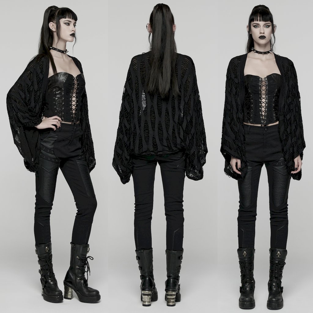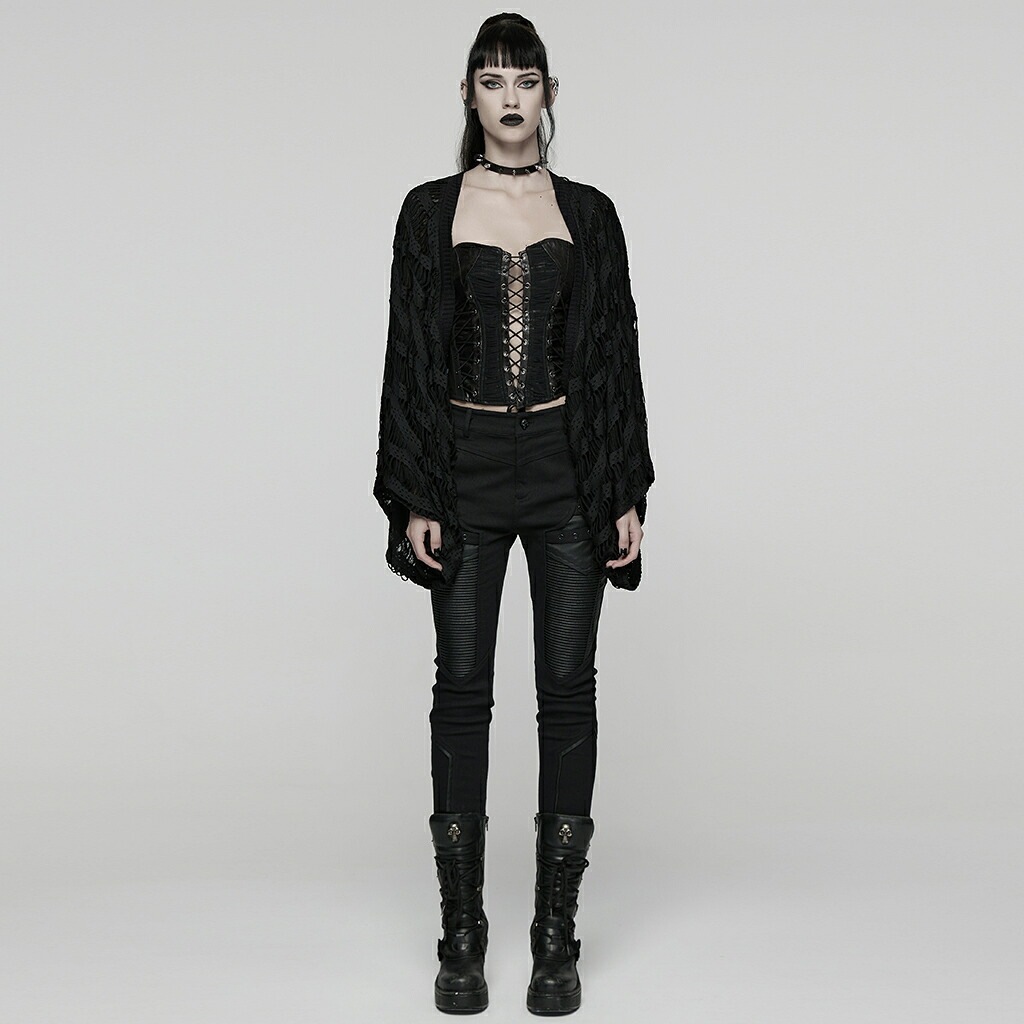 glareshop グレアショップ「M/2XL」JXA018-B■退廃風パンクスタイルカーディガン 黒 レディース | 地雷系 ヴィジュアル系 モード系 地雷系 ガーリー モード系 [PUNK RAVE] Decadent Punk Style Cardigan