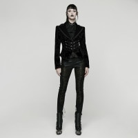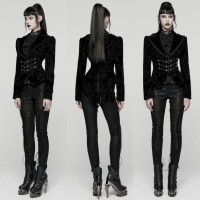 ドラマチックな雰囲気を持つ「ゴシックヴィンテージプリントベルベットコート」をお届けします。このショート丈の黒いコートは、エンボス加工の横別珍と人工皮革を使用し、洗練された質感と独自の張り感を実現。コーディネートの主役になること間違いなしです。